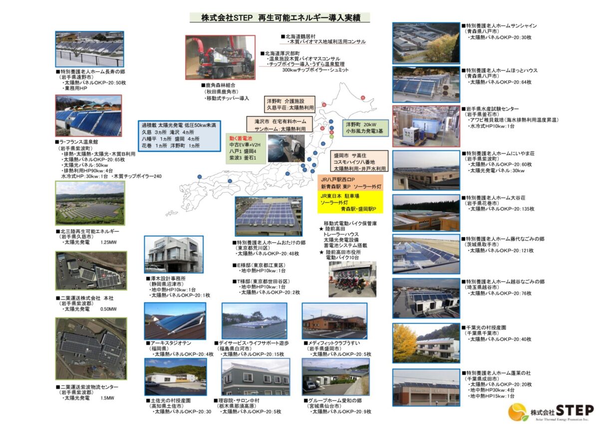 また、太陽熱エネルギー利用だけでなく、様々な再生可能エネルギーの利用をご提案し、福祉施設様をはじめとして多くのお客様に導入いただいております。